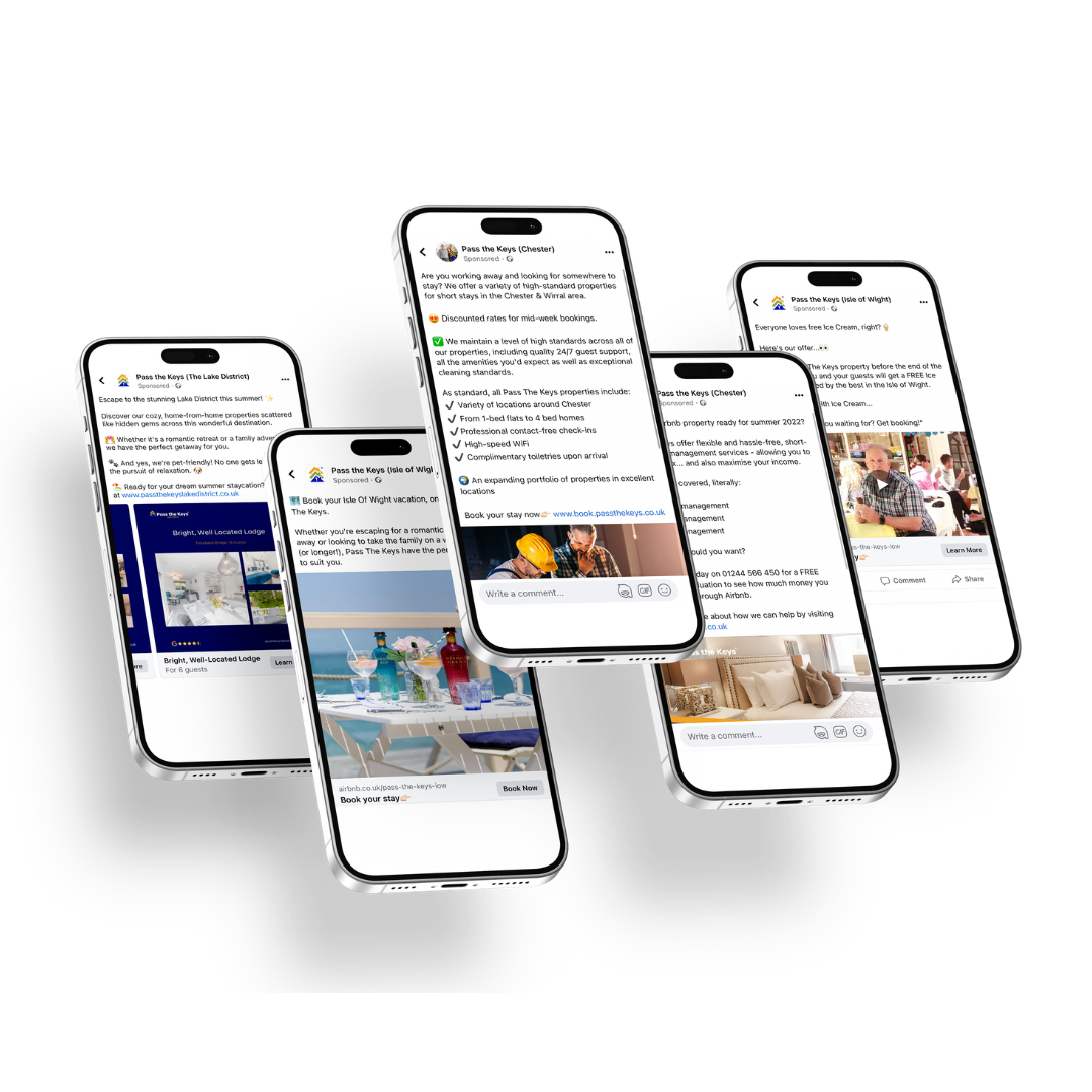 Since 2022, we’ve partnered with Pass The Keys, managing the social media channels of over 30 of their UK and European franchisees across Meta.